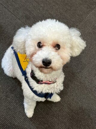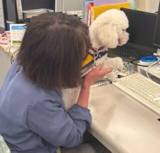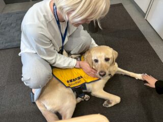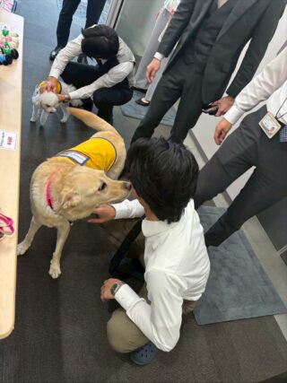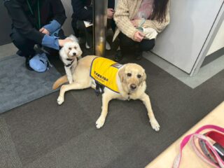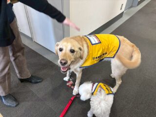 大塚商会梅田ビルに介助犬ジュリエットと聴導犬りんが出勤しました。