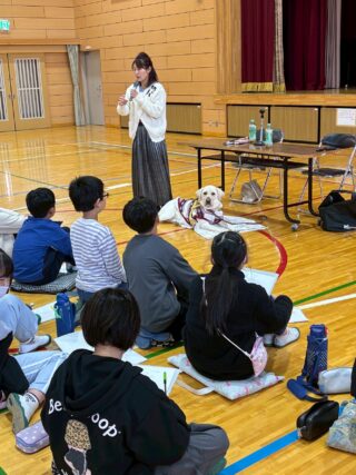 当協会社員(ライオン事務器より出向)の盲導犬ユーザー白濱&盲導犬ダスティーが、甲府市内の小学校で福祉講話を行いました。